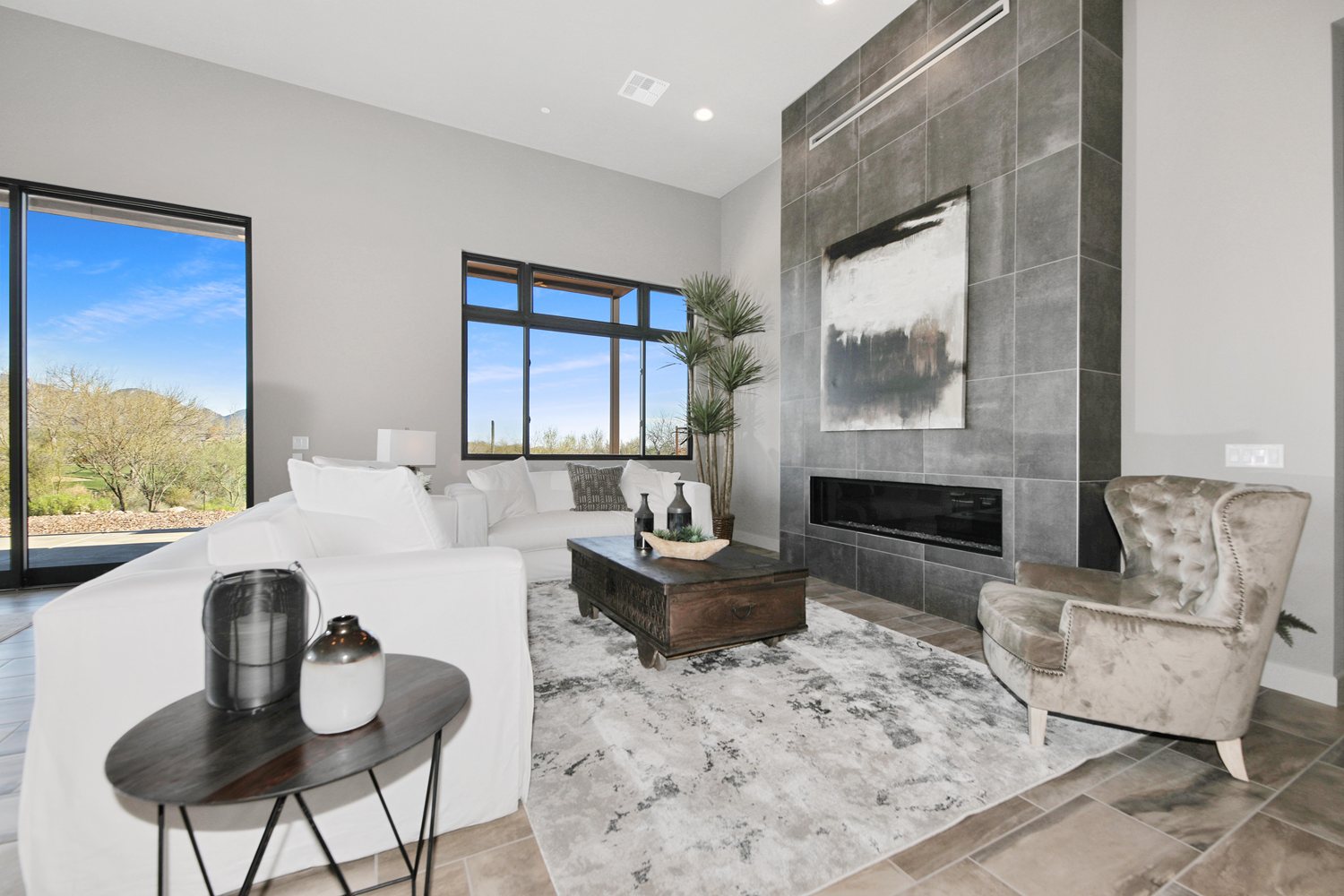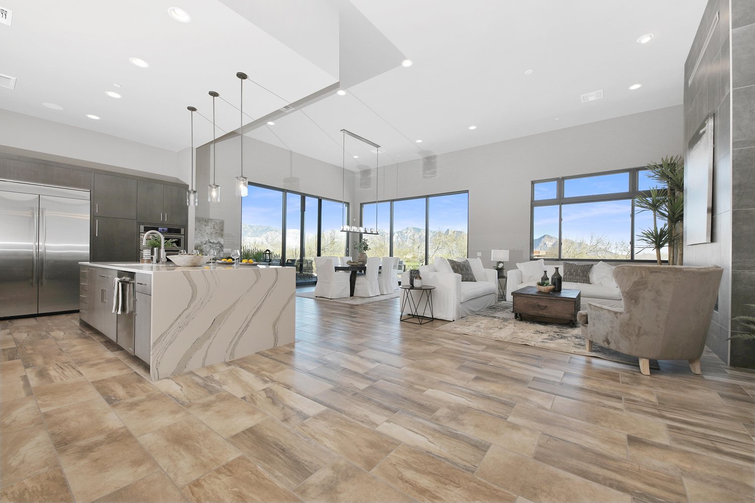 Keep your golf clubs by the door at this stunning modern home. Located in a luxury golf course community, your private enclave promises exclusive access to the Stone Canyon Club as well as the famous Phil Mickelson golf course. Whether you’re on the green or sipping a glass of wine on your back patio, Stone Canyon allows you to enjoy the magnificent views of the Tortolita and Catalina Mountains every day of the year.