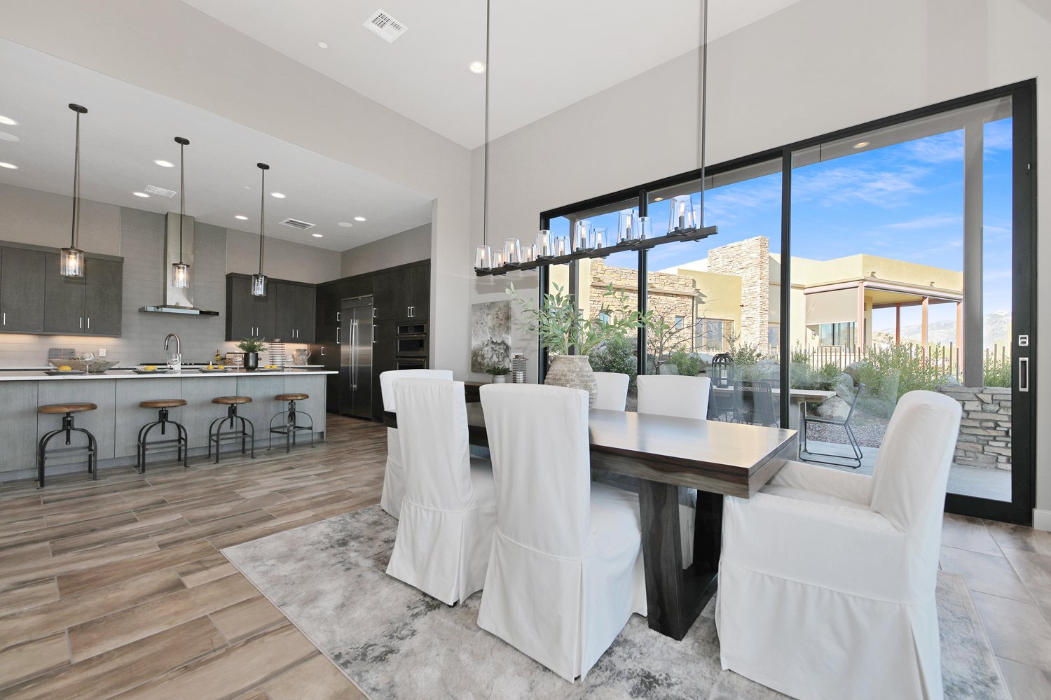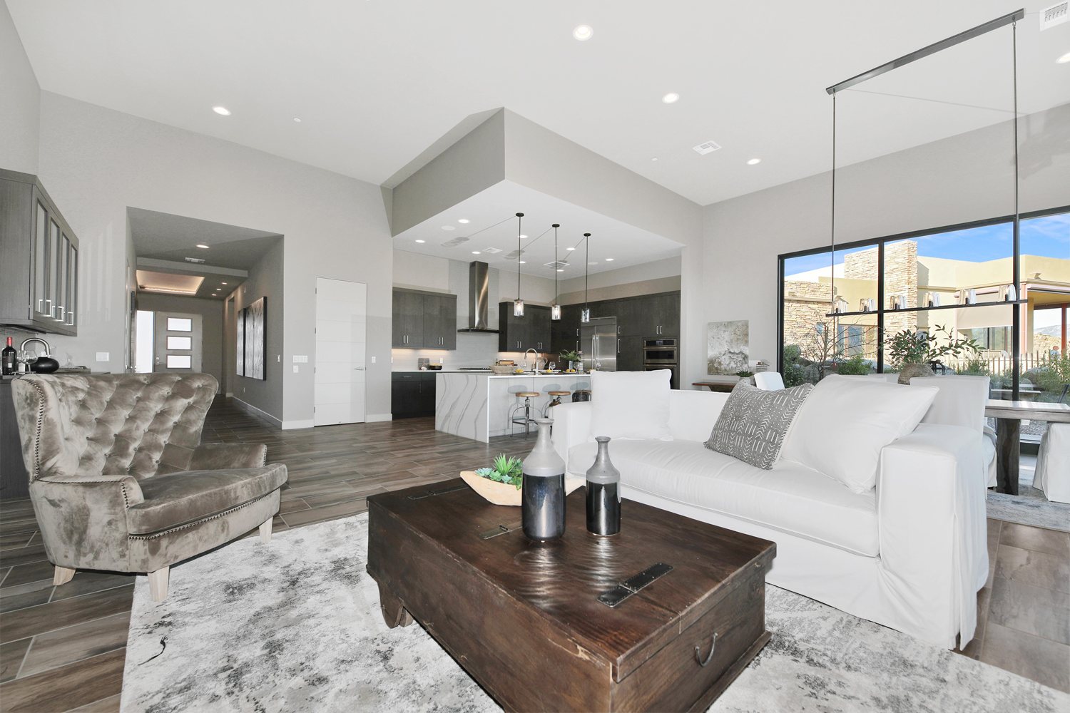 With three distinct architectural elevations with most floor plans, choose a home design that fits your dream home. Each home is outfitted with spacious covered patios, designer exterior lighting, and exquisite entry doors with designer-quality hardware. On the inside, the home flaunts expansive ceilings, glass sliders, elegant tile flooring, and energy-efficient choices throughout.