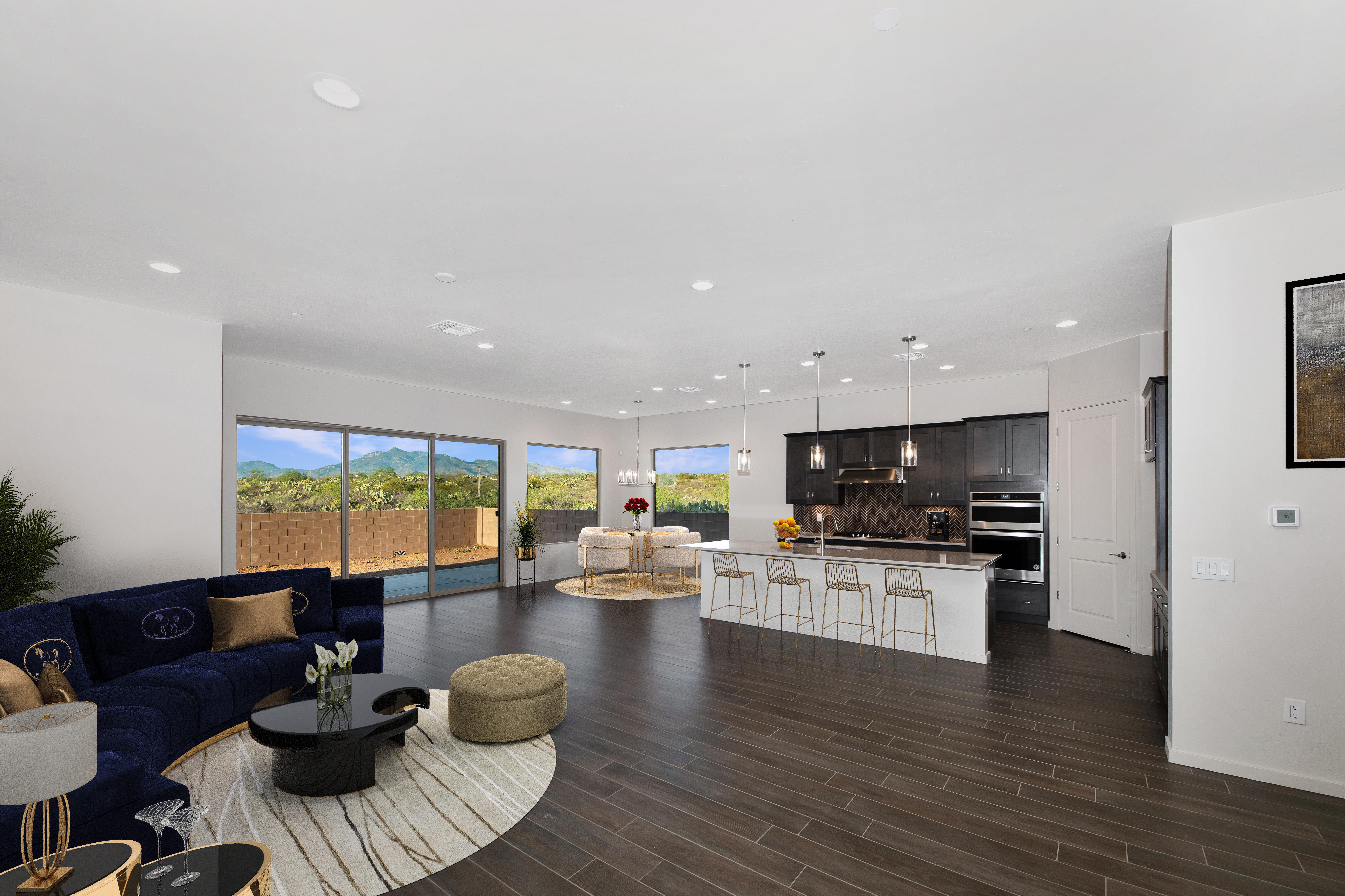 From the engineered post-tension concrete foundation to energy-efficient windows, each home at Windmill Ridge is carefully designed to provide the best from quality resources to beautiful detailing. The exquisite entry door immediately makes a statement, and on the inside, high ceilings and glass sliders welcome bright light and offer an undeniable feeling of luxury with views of the Rincon and Catalina Mountains. The handcrafted interior wall finishes along with other details including optional fireplaces, spacious owner suite walk-in closet, and speaker surround sound truly makes these homes stand out.